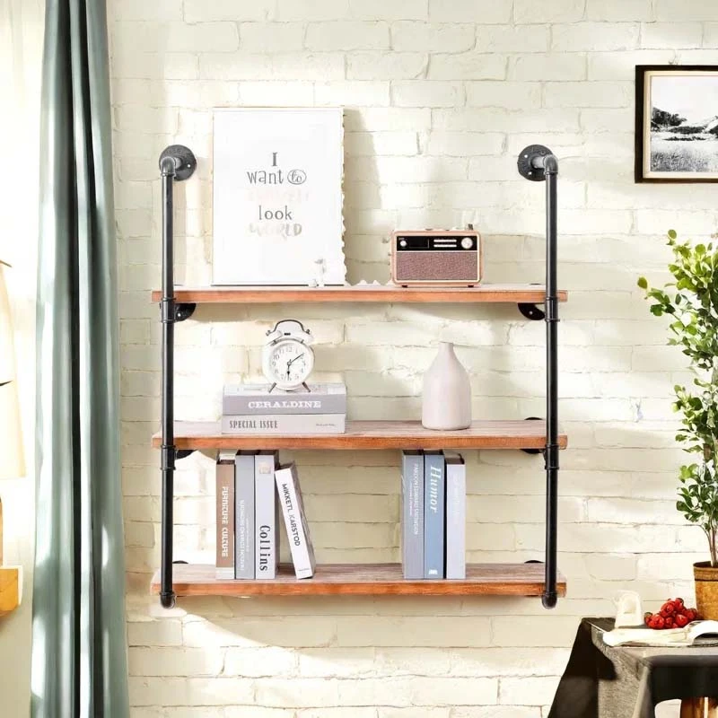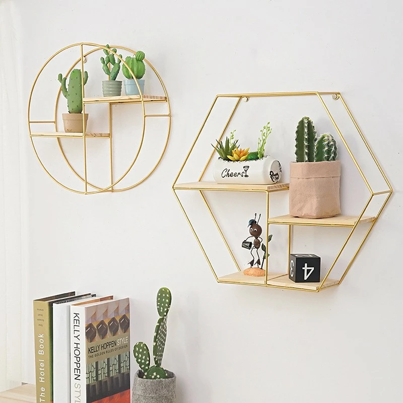 اگر میخوای عنصر متفاوتی روی دیوار داشته باشی، شلفهای فلزی با فرمهایی مثل شش ضلعی، لوزی یا مثلث، ظاهر مدرن و خاصی به فضای منزلت می دهند. این مدلها اغلب با رنگهای مات مشکی، طلایی یا سفید طراحی میشن و حتی بدون وسیلهی دکوری هم، خودشون به زیبایی جلوه می کنند.