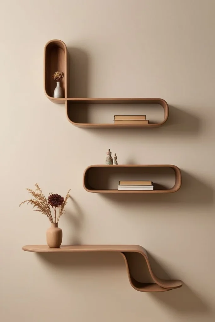 ۶. شلف دیواری با فرم ارگانیک و خطوط منحنی