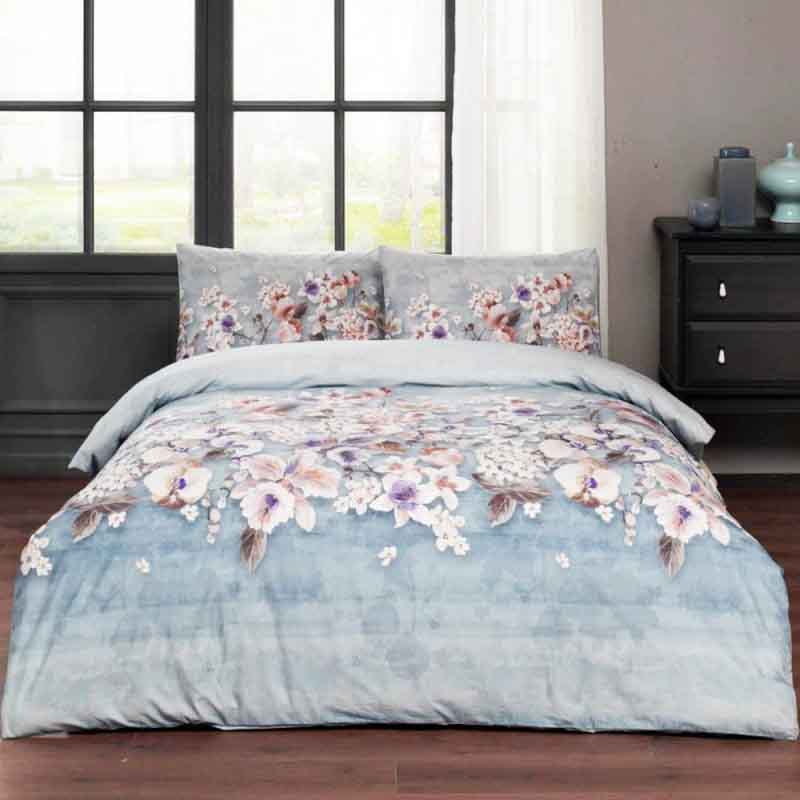 ست سرویس روتختی دو نفره ترک، رنگ آبی، طراحی گلدار، جنس رنفورس، برند تاچ، شامل کاور لحاف، روبالشی و روتشکی و بدون لحاف