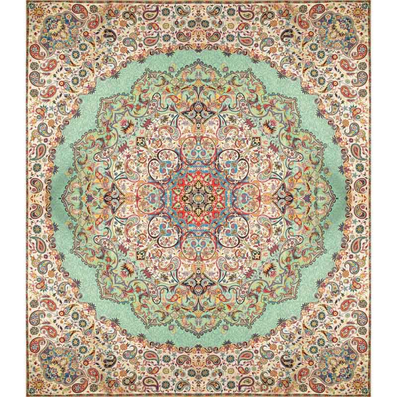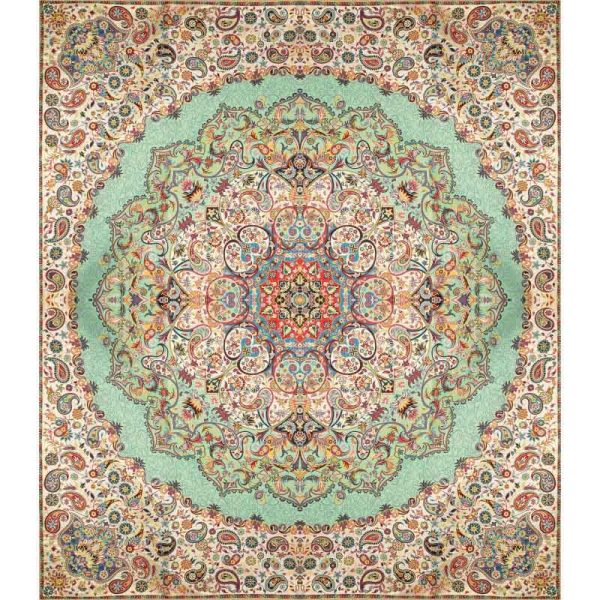 ست سرویس روتختی دو نفره سنتی ترمه یزد، رنگ فیروزه ای، طرح اردیبهشت، شامل روتختی و روبالشی و کوسن