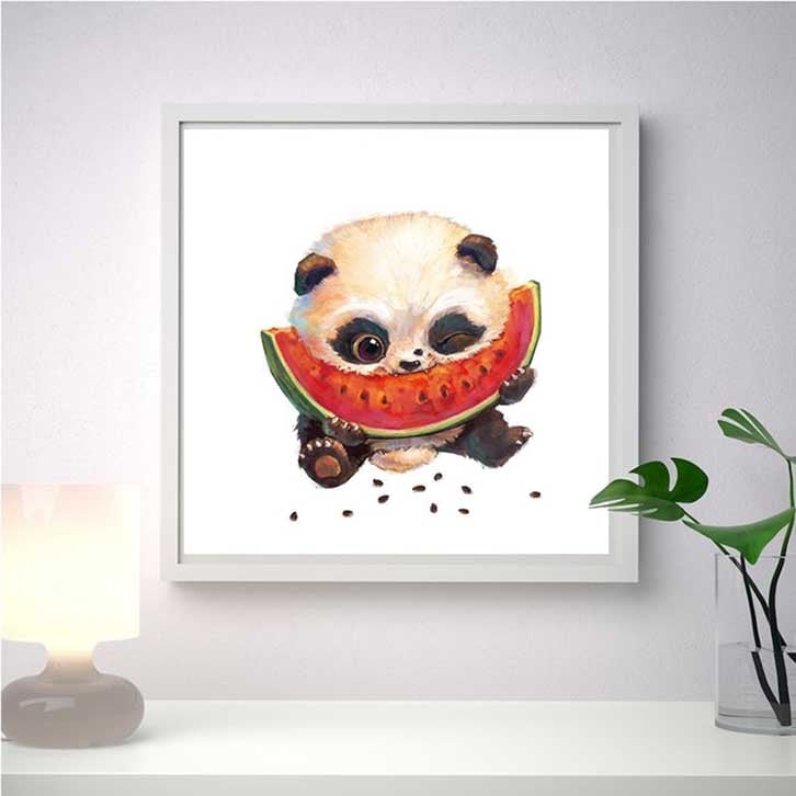 تابلو اتاق کودک پسرانه یک تکه طرح شب یلدا و هندوانه و خرس پاندا