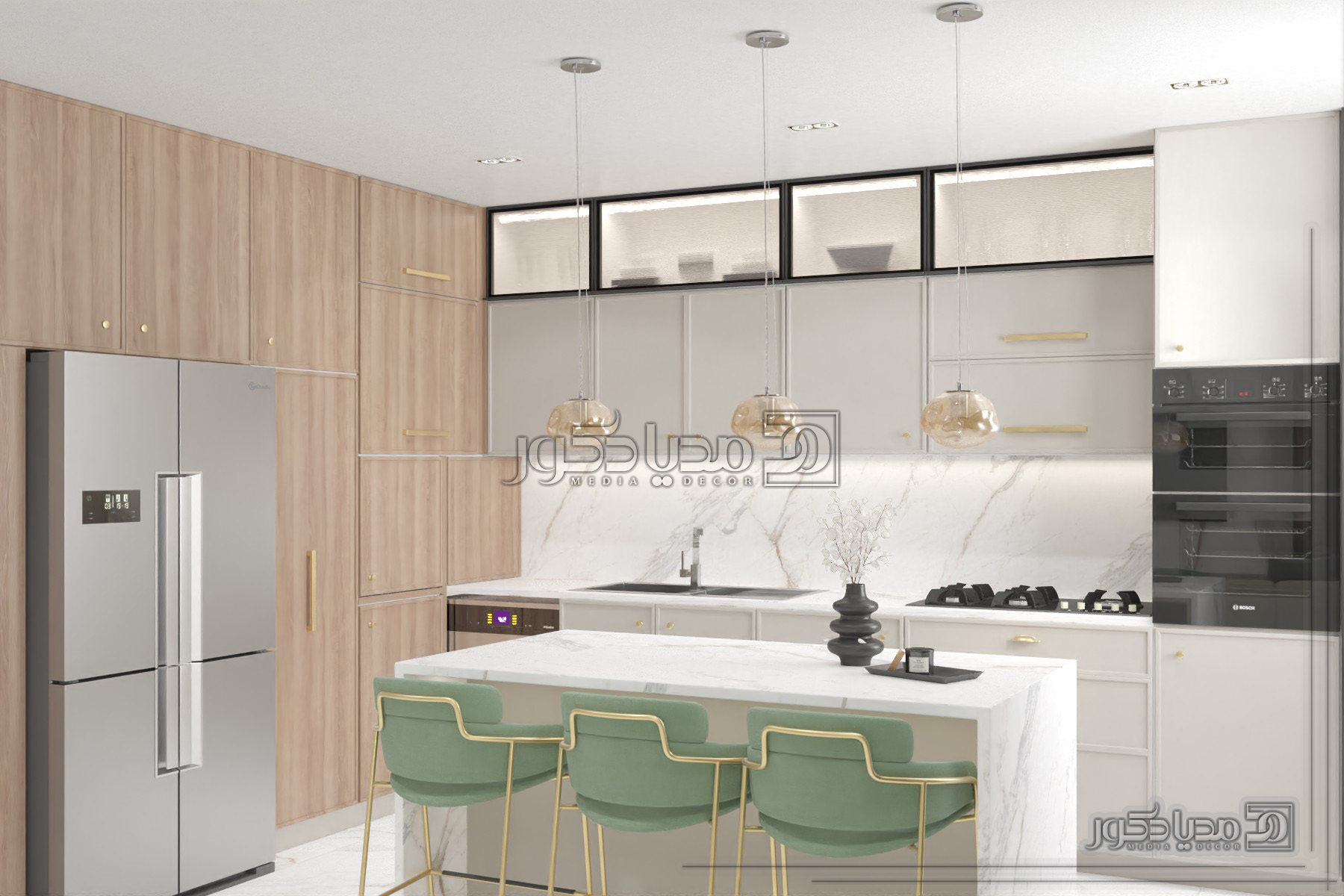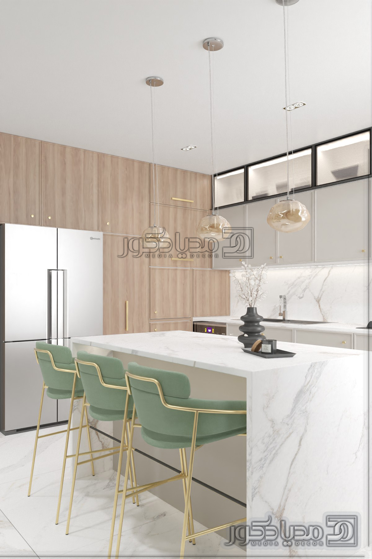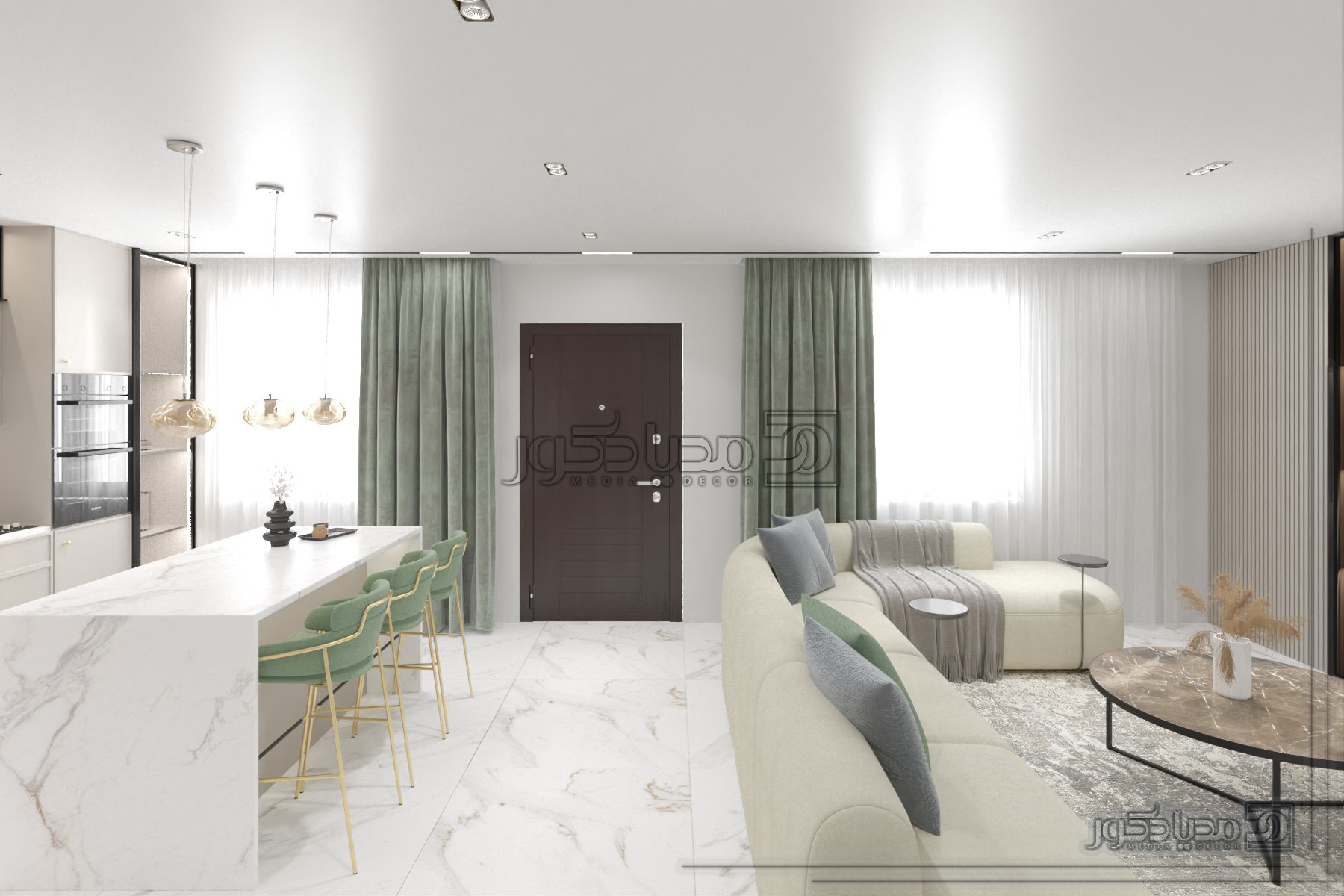 باید بگویم که این پروژه جزو خدمات فرنیش و طراحی داخلی مدیادکور است که علاوه بر انتخاب مبلمان طراحی آشپزخانه، سقف و دیوار ها هم شامل می شود.